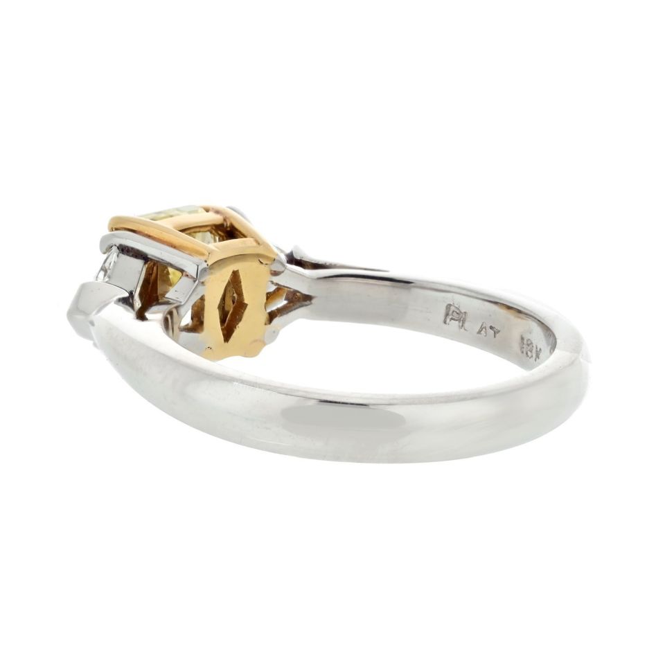 1.27 carat Radiant Cut Fancy Yellow Trilliant Cut Three Stone Diamond Engagement Ring