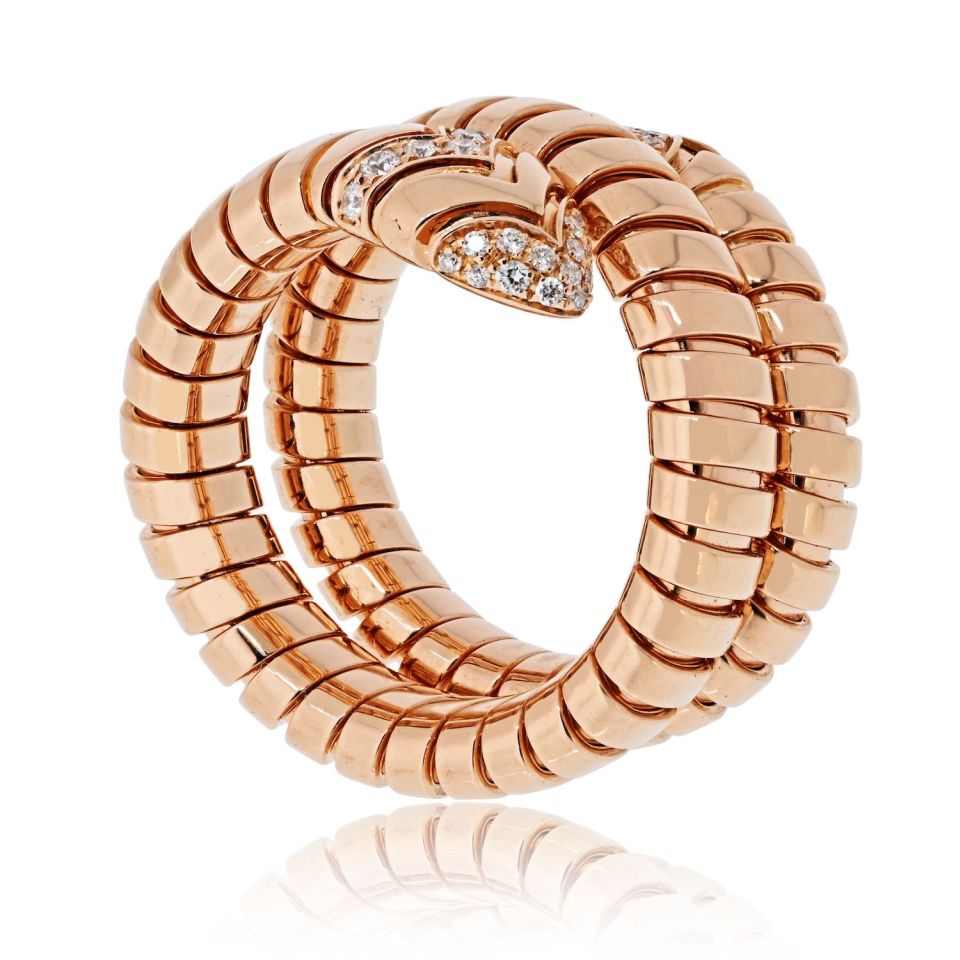 Bvlgari Serpenti 18K Rose Gold Diamond Serpenti Tubogas Size L Ring
