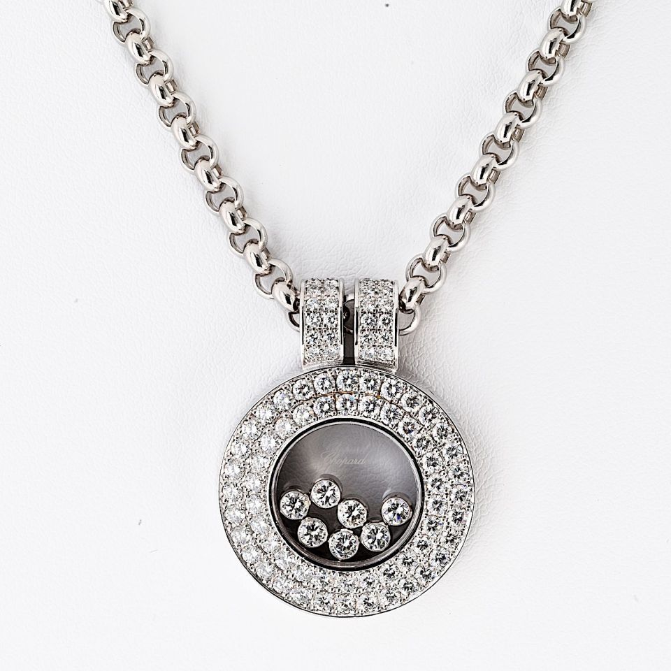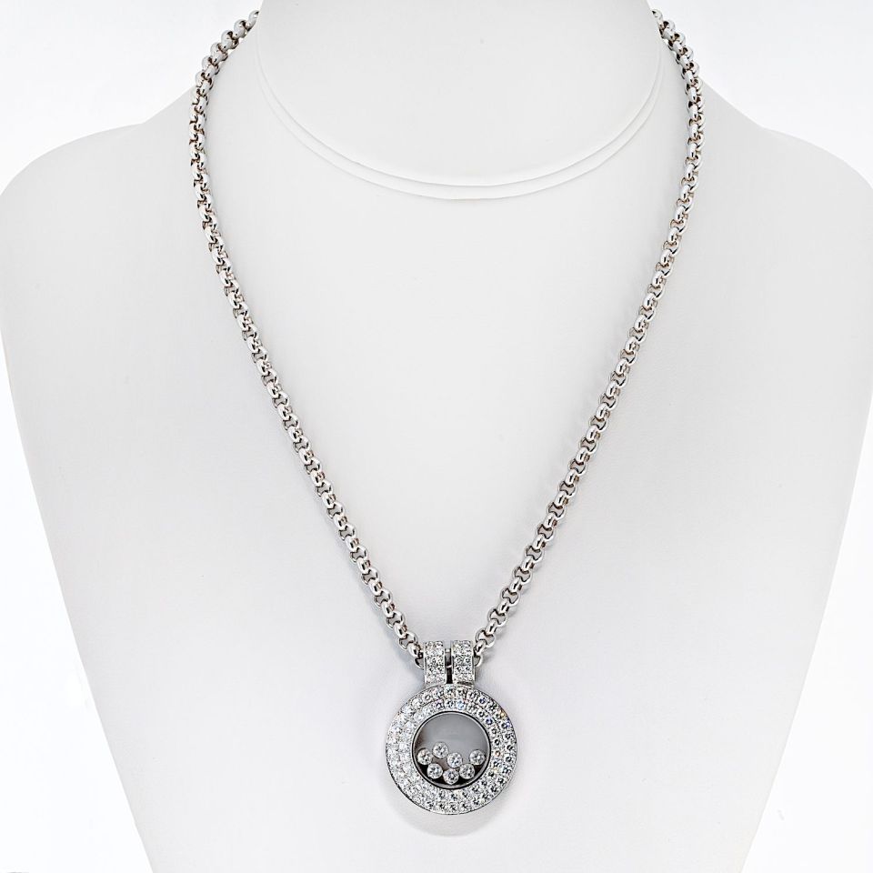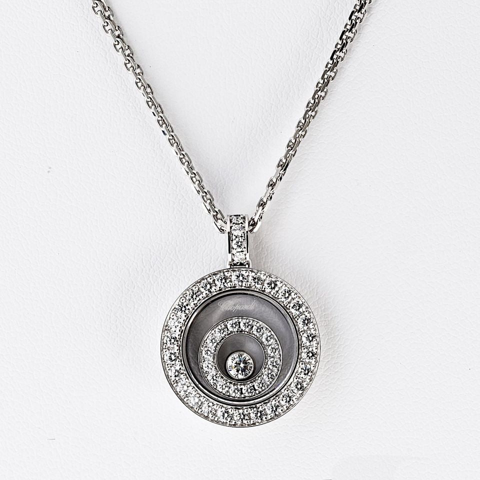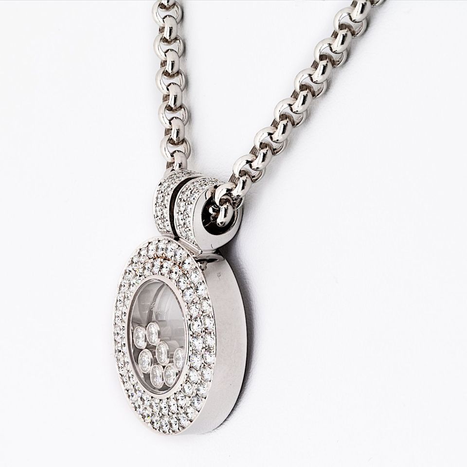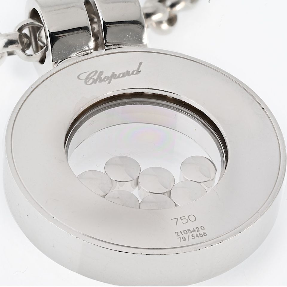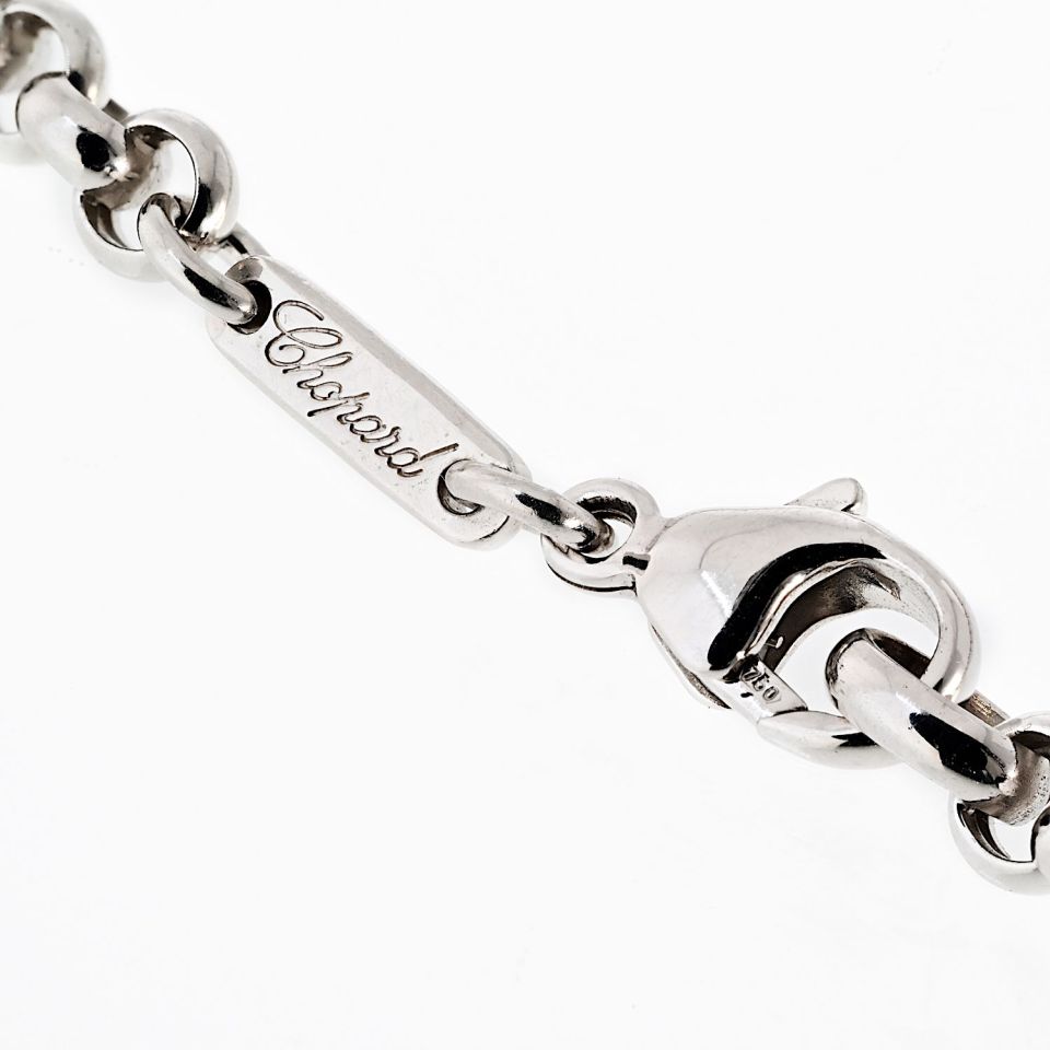 Le Petit-Fils de L.-U. Chopard & Cie S.A., commonly known as Chopard, is a Swiss manufacturer and retailer of luxury watches, jewelry, and accessories. Founded in 1860 by Louis-Ulysse Chopard in Sonvilier, Switzerland, Chopard has been owned by the Scheufele family of Germany since 1963. Shop our extensive range of beautiful pre-loved luxury jewelry from one of the world's most desirable Swiss designer brands, Chopard.