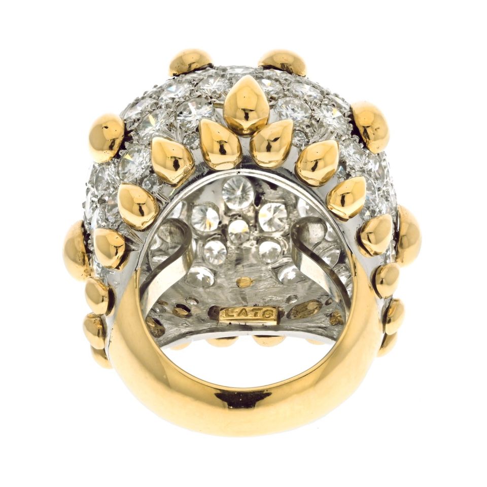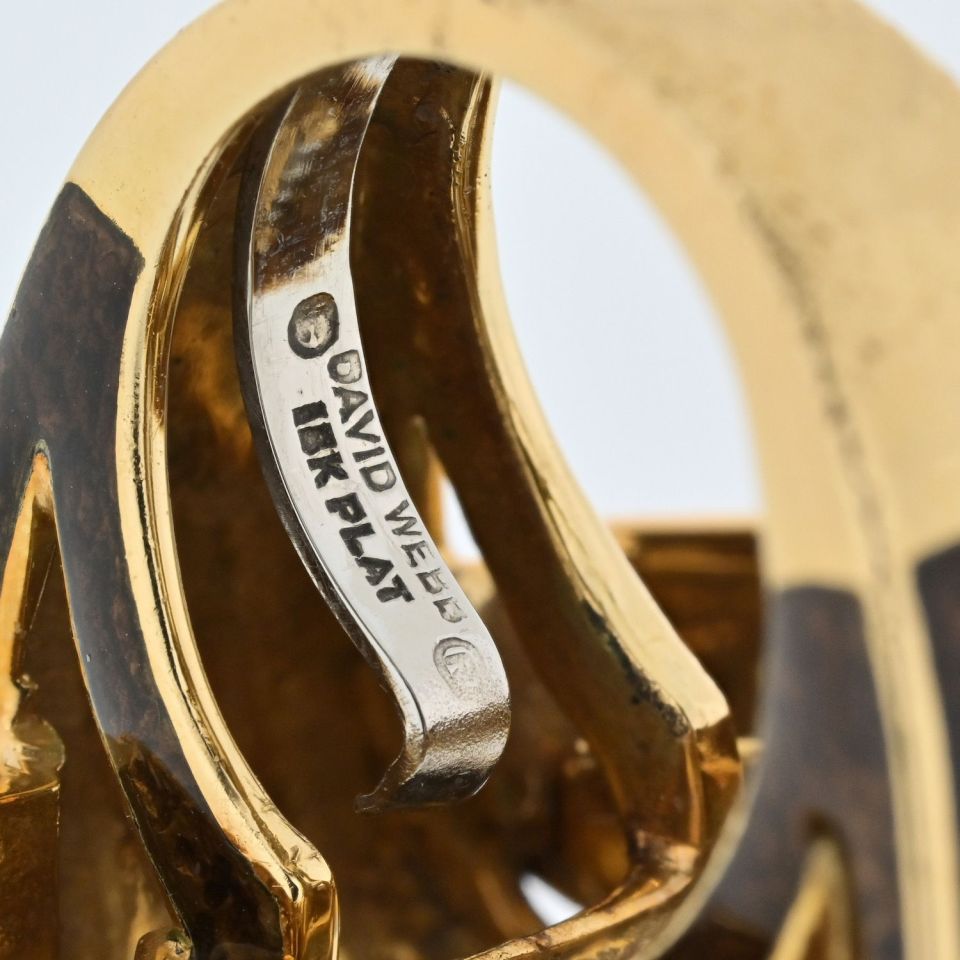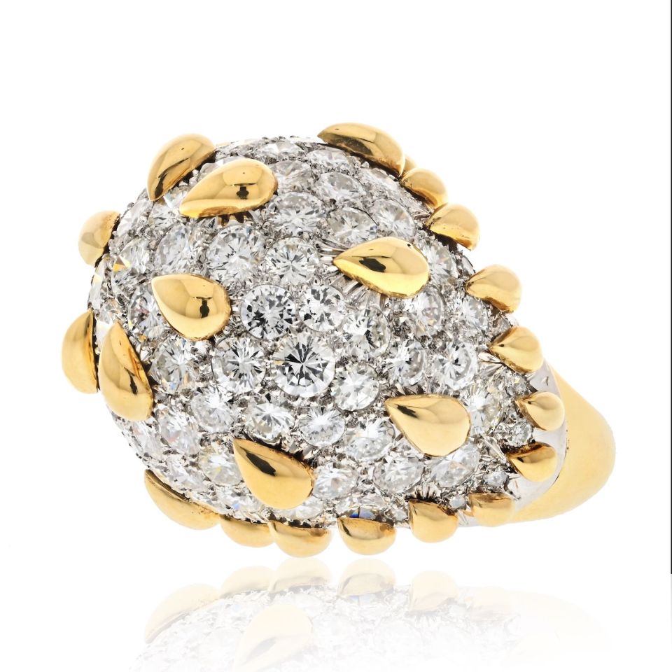 David Webb Platinum & 18K Yellow Gold Bombe Diamond Cluster Gold Tear Drop Deatails Ring