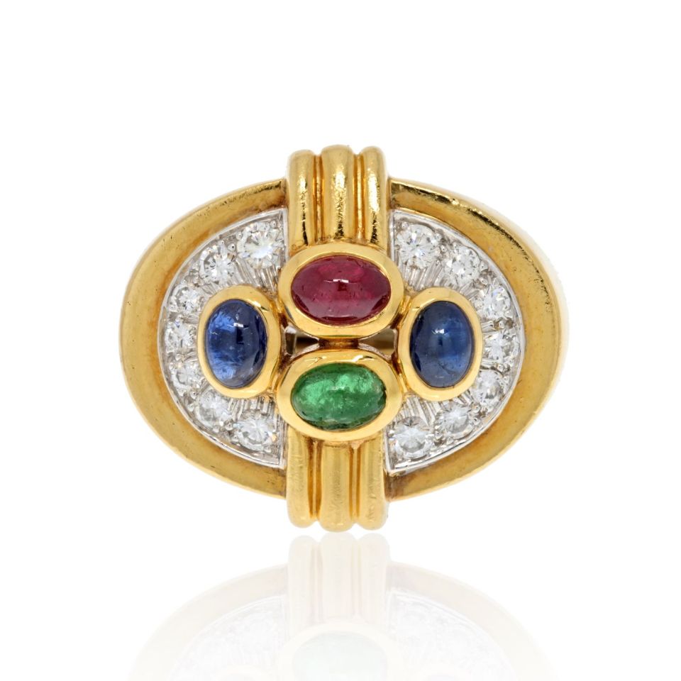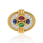David Webb Platinum & 18K Yellow Gold Multi Color Gemstone And Diamond Ring