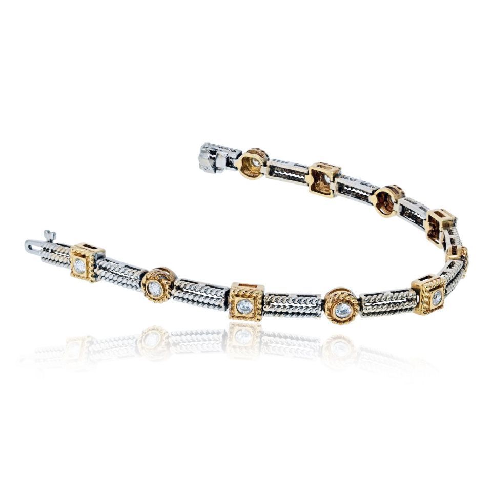 14K Two Tone Two Tone 1.06cttw Round Diamond Bracelet