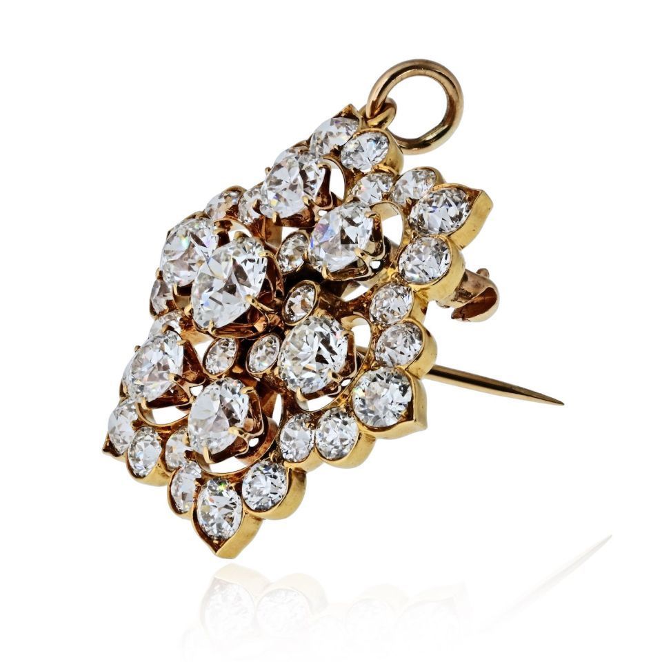 Snowflake 18K Yellow Gold Convertible Brooch Pendant 8.00cttw Old Euro Diamond Brooch