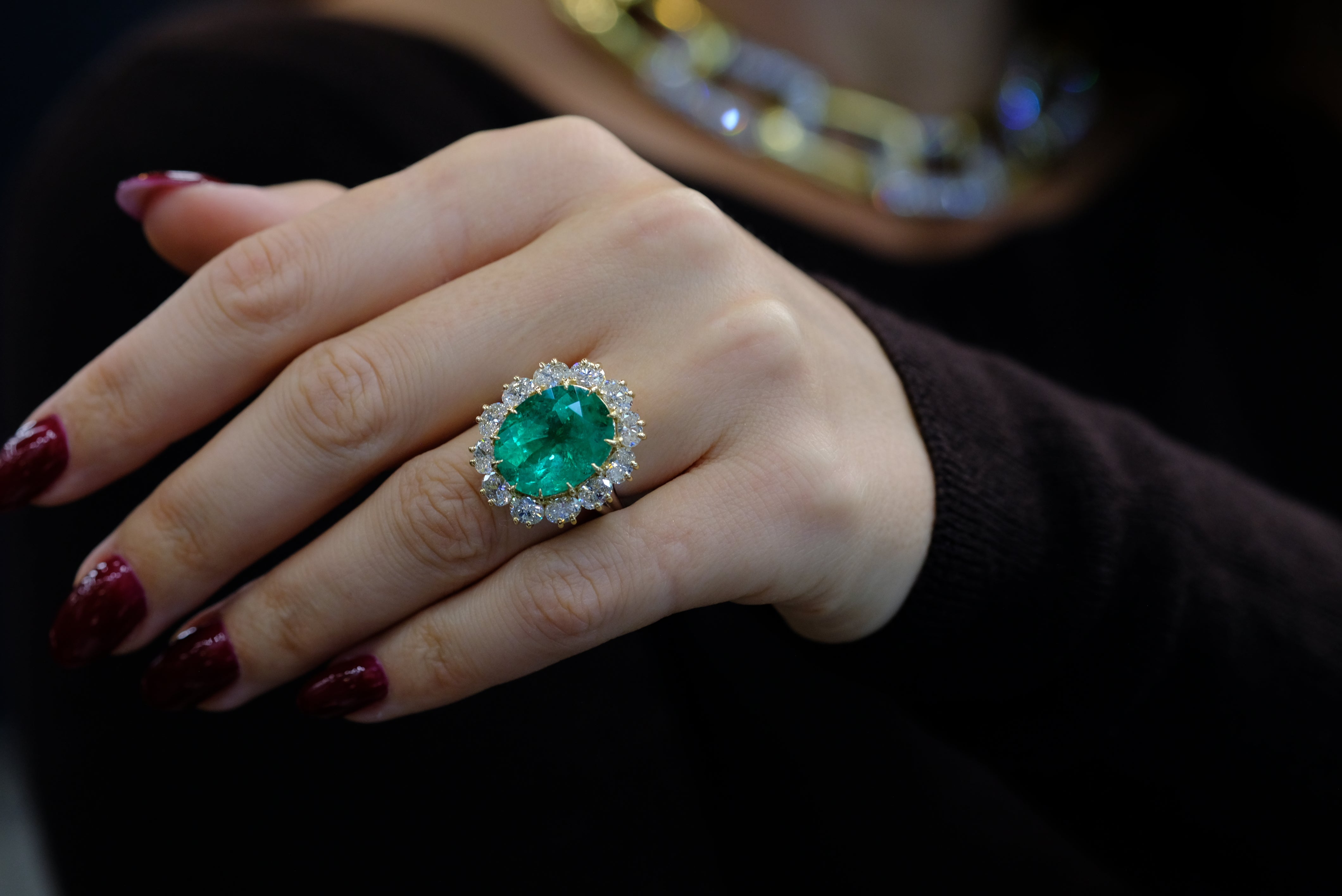 12 carat Oval Green Emerald And Diamond Halo Cocktail Ring