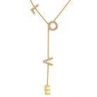 Delicate 18K Yellow Gold Diamond L-O-V-E Chain Necklace.