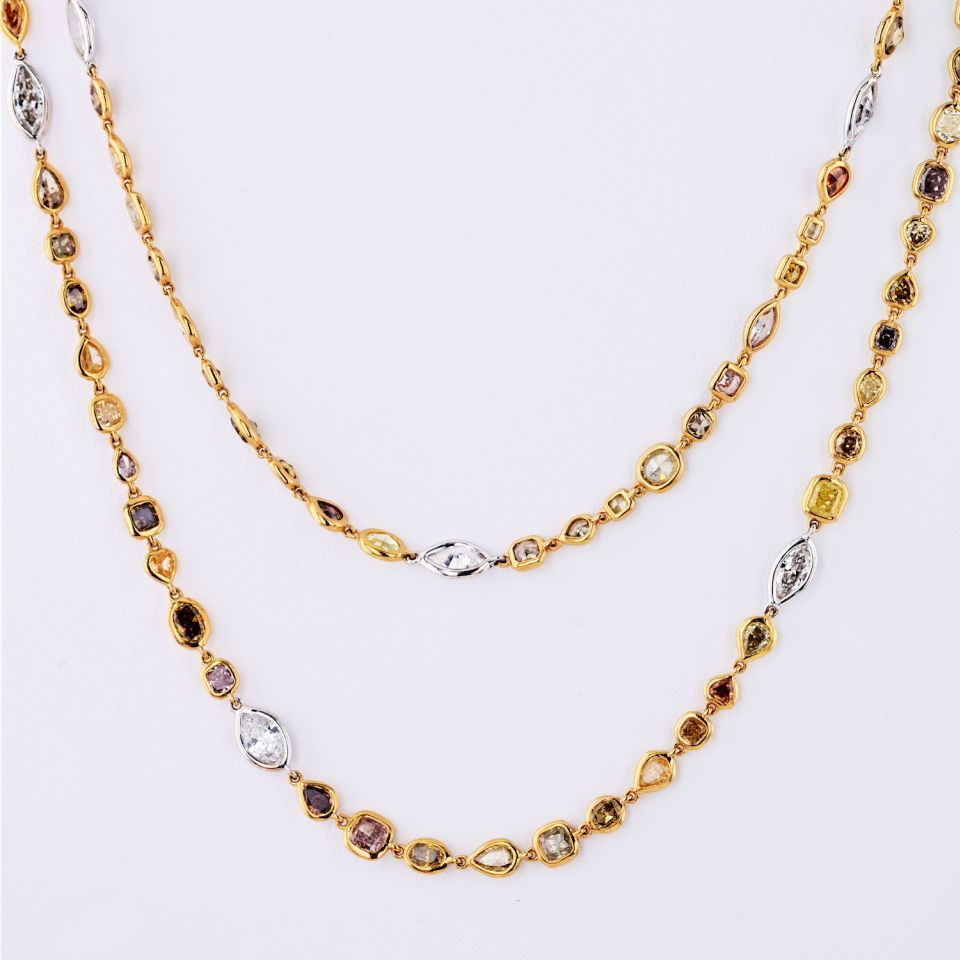 Platinum & 18K Yellow Gold 41 carat Fancy Color And White Diamonds by the Yard Necklace.