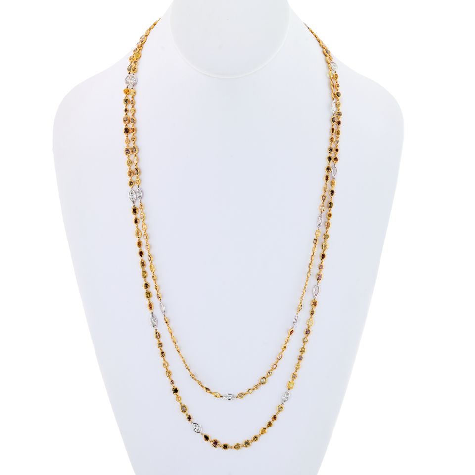 Platinum & 18K Yellow Gold 36 carat Fancy Color And White Diamonds by the Yard Necklace