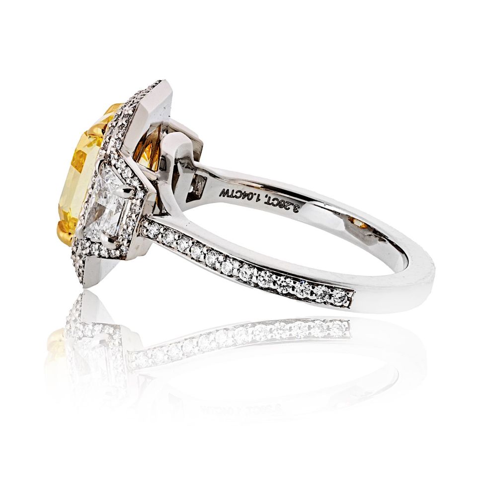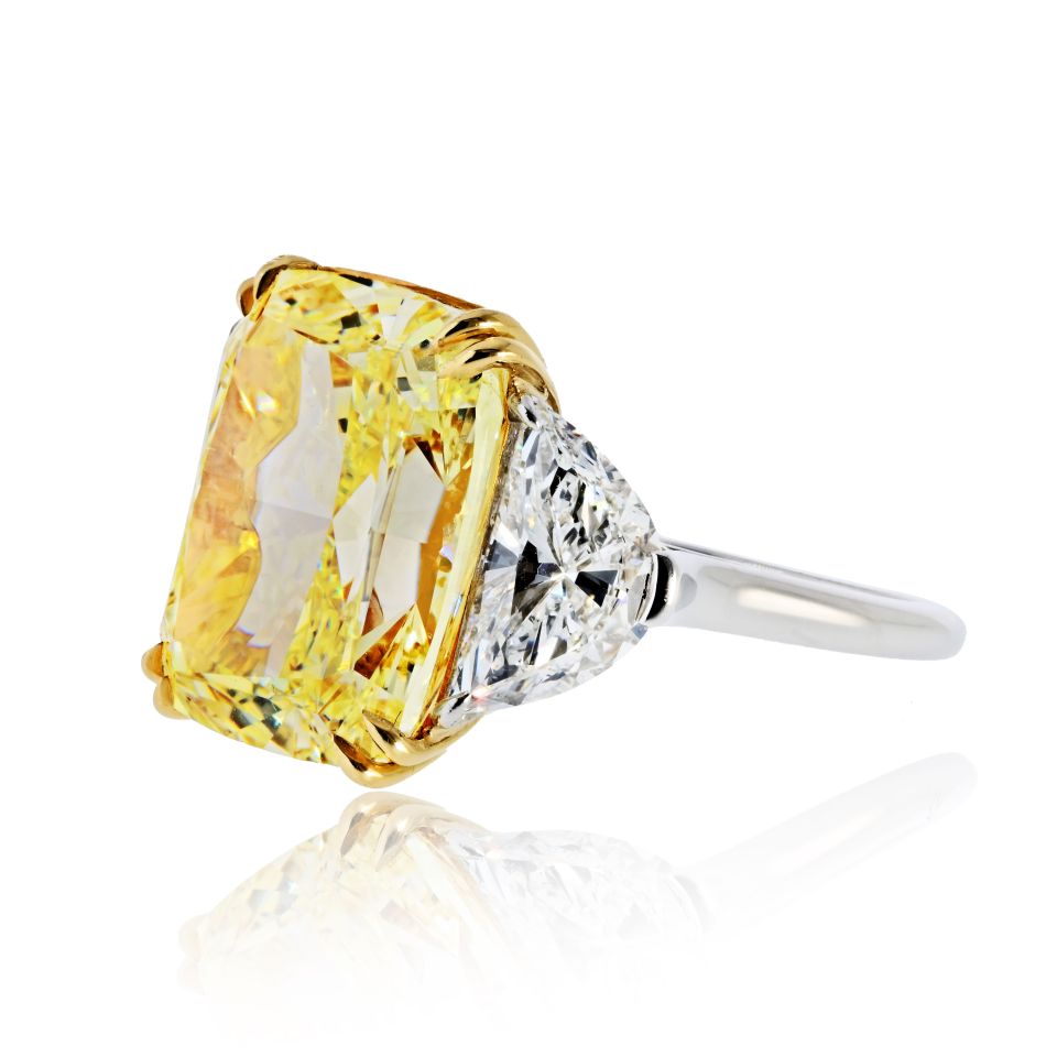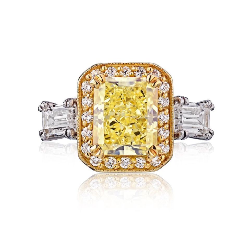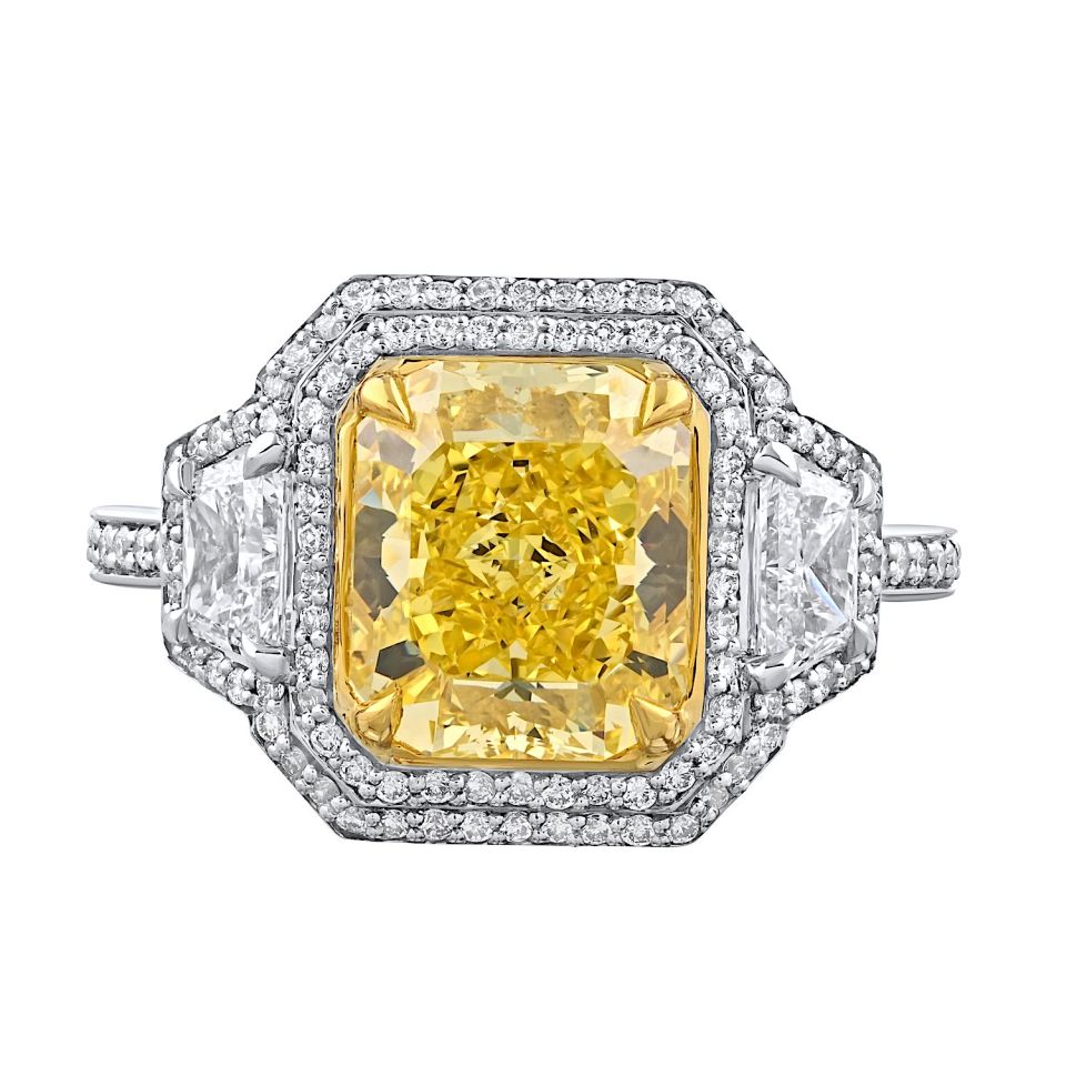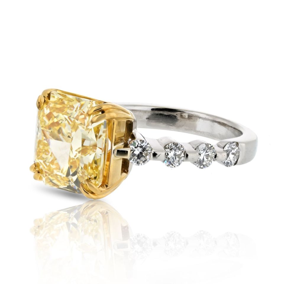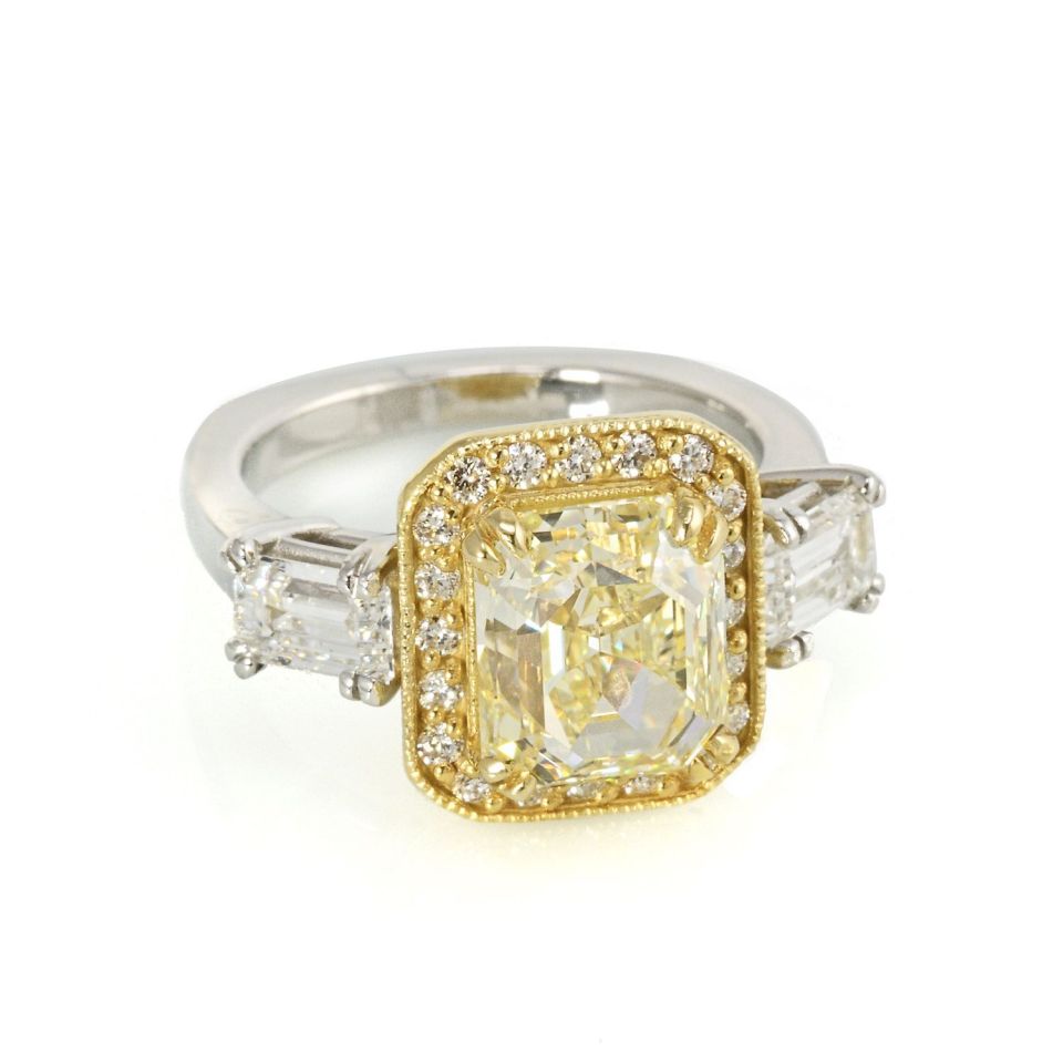 Fancy Yellow Diamond engagement rings have been very popular for many years, but lately, they are the craze with so many celebrities wearing them on the red carpet. All of our rings contain natural yellow diamonds as verified by the G.I.A. (Gemological Institute of America.) They are available in colors ranging from Fancy Light Yellow, Fancy Yellow, Fancy Intense Yellow, and the ultimate Fancy Vivid Yellow. Here you will find a sampling of the many rings that we have available. If you have a special request in size, shape, or intensity of color, please ask us. We just might be able to help you fulfill your dream.