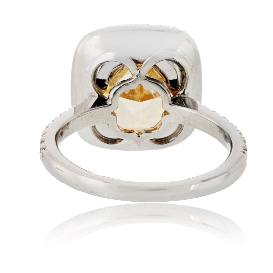 5 carat Radiant Cut Diamond Fancy Intense Yellow Halo Engagement Ring.