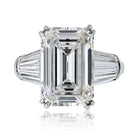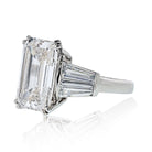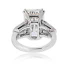 Emerald cut diamond engagement ring showcasing a stunning 5.80ct natural earth-mined diamond, GIA certified K color and VS1 clarity. Elegantly flanked by six baguette-cut diamonds totaling approximately 1.50cttw, all set in timeless platinum for a sophisticated and balanced silhouette.