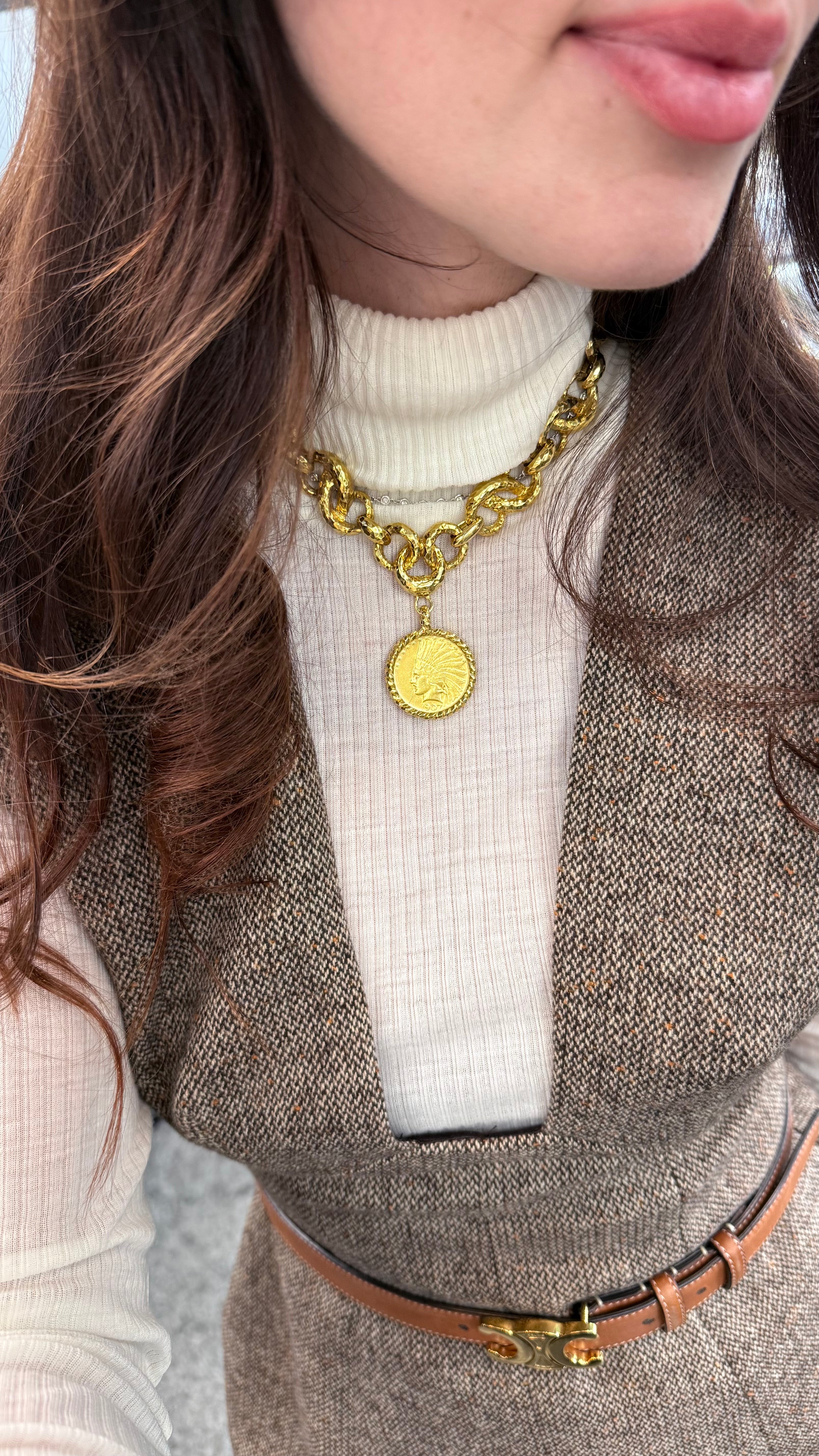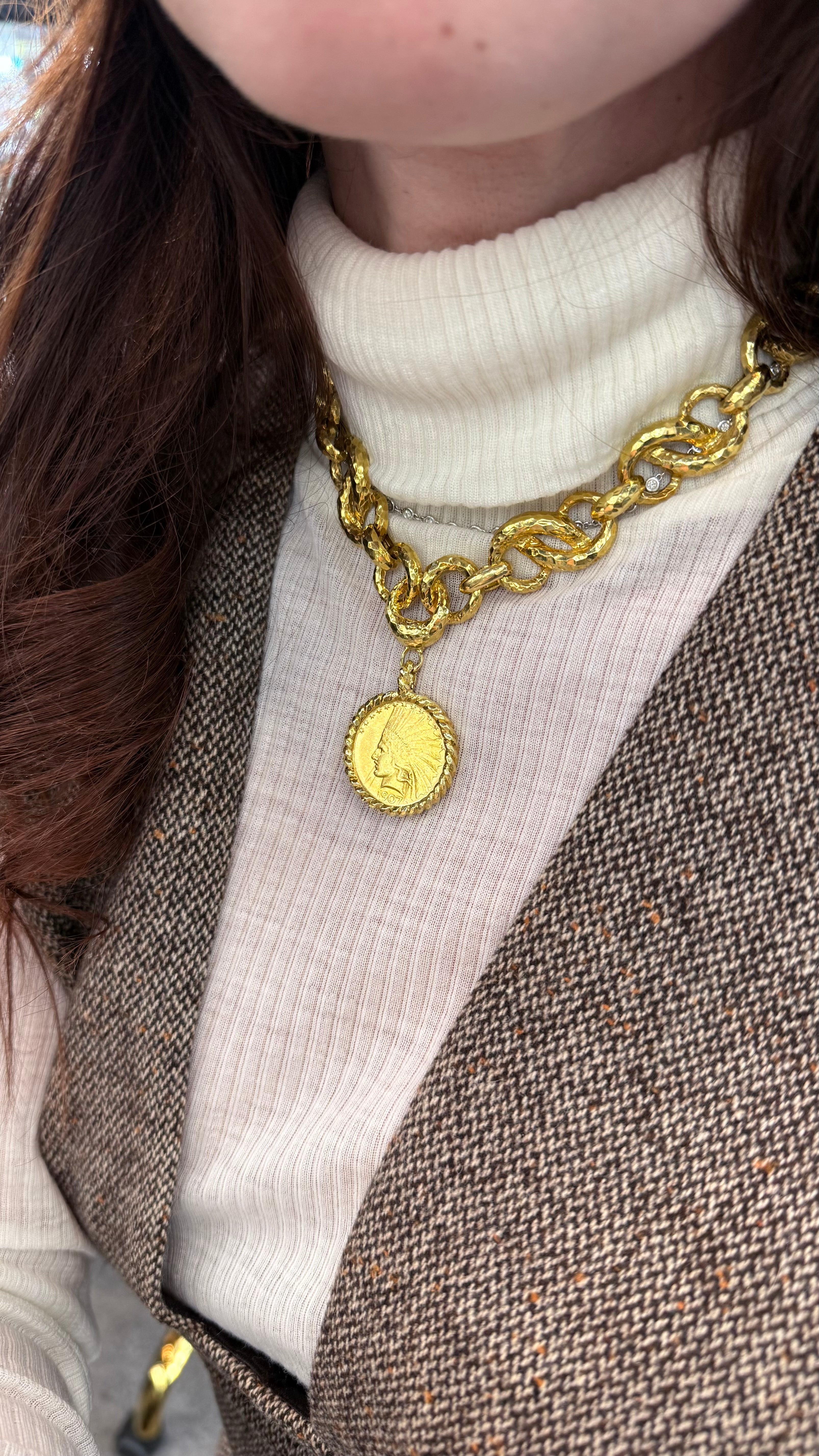 David Webb Coin Platinum & 18K Yellow Gold Hammered Coin Necklace