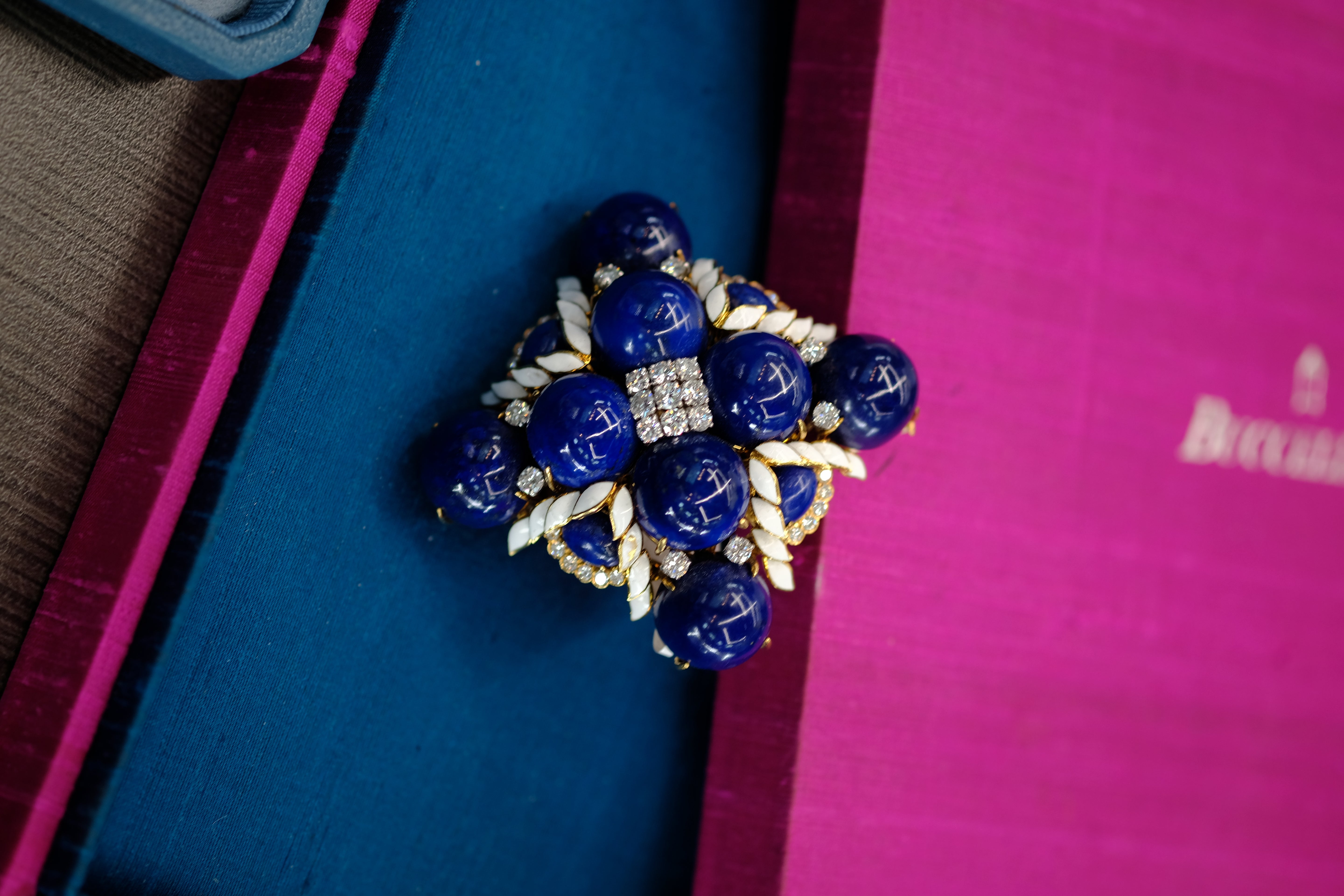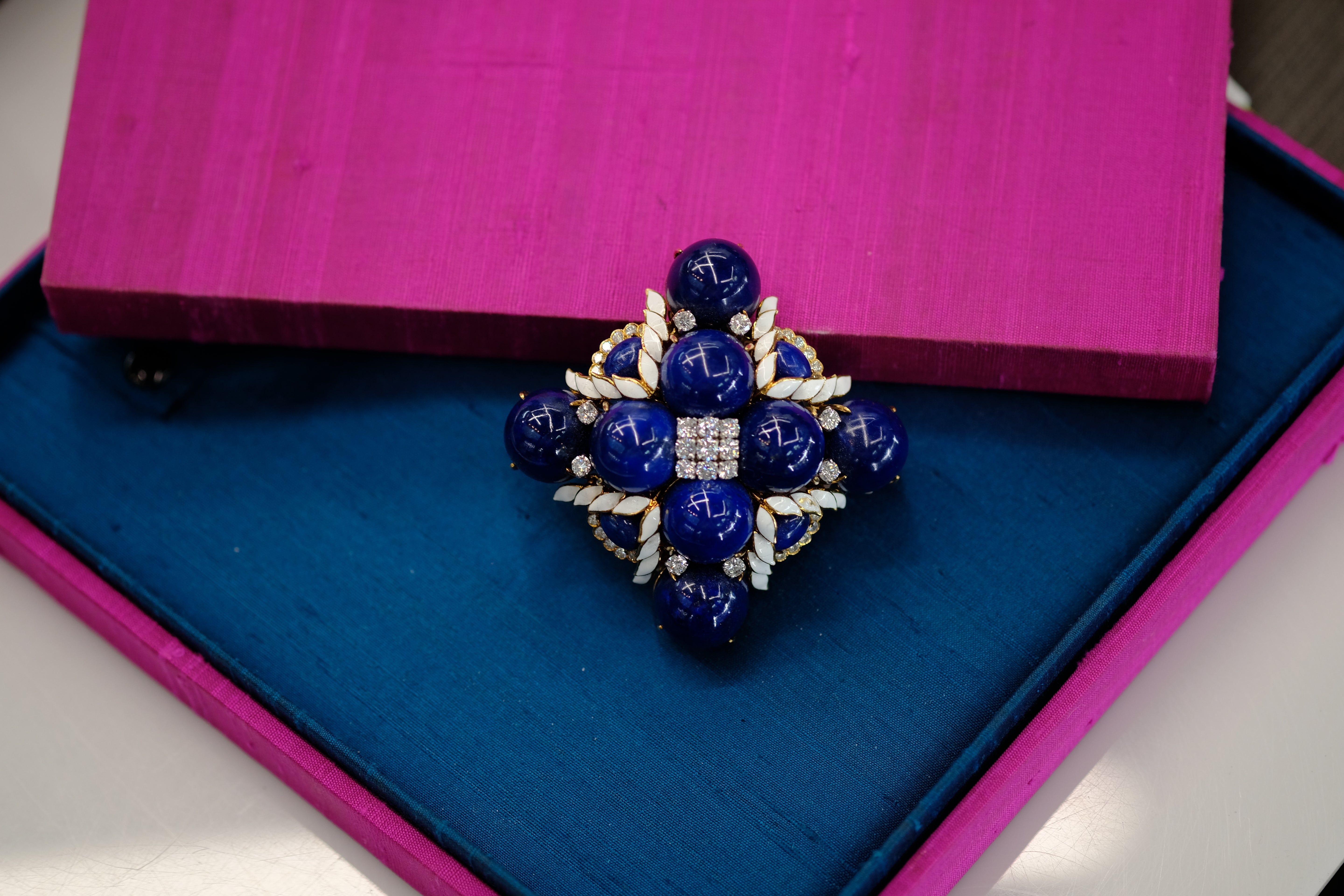 David Webb Platinum & 18K Yellow Gold 1960's Maltese Lapis, Enamel Cross Style Brooch