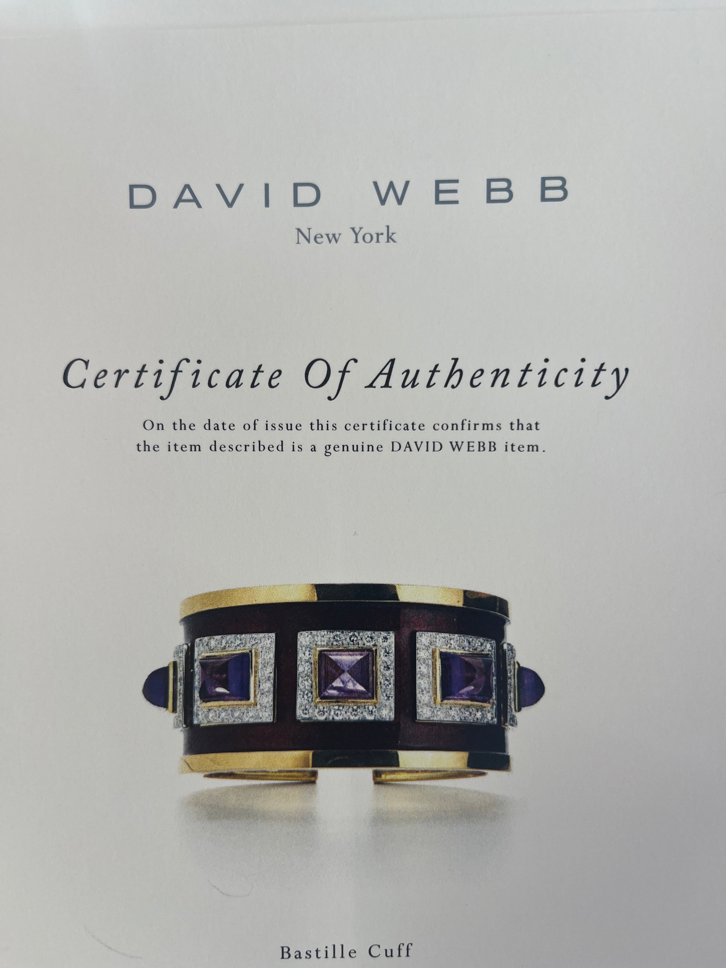 David Webb Platinum & 18K Yellow Gold Bastille Sugarloaf Amethyst Red Enamel Diamond Cuff Bracelet