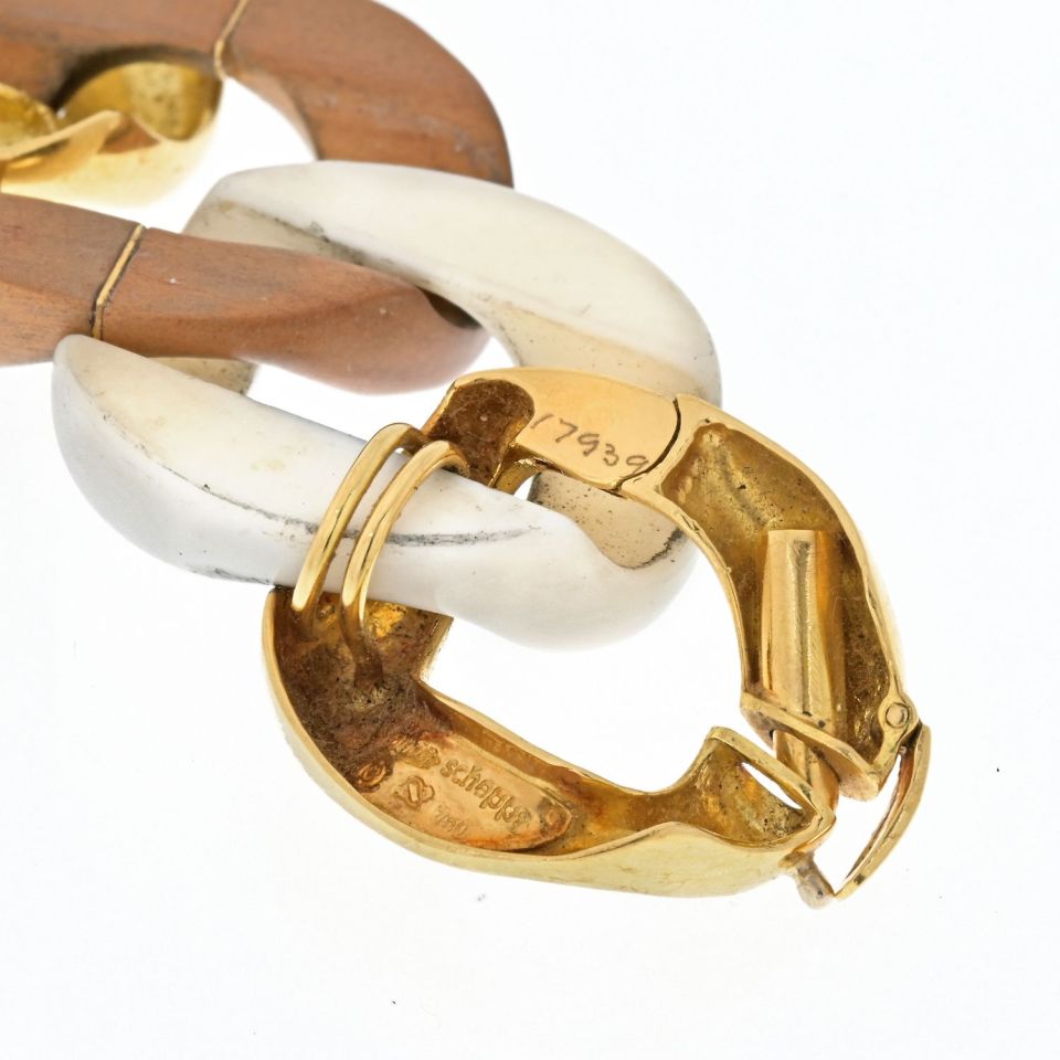 Born in New York City in 1881, Seaman Schepps created an eponymous jewelry house, becoming known as “America’s Court Jeweler” for his unique, bold designs, worn by the country’s most prominent society families. The son of immigrants, his humble beginnings led him to sit outside of the boutique of quintessential New York jeweler David Webb and sketch drawings for his own designs. Schepps left the Lower East Side of Manhattan around the turn of the century, finding work as a traveling salesman in Los Angeles and San Francisco. It was in California that he opened his first jewelry store, “The Virginia Studios,” named for his eldest daughter.