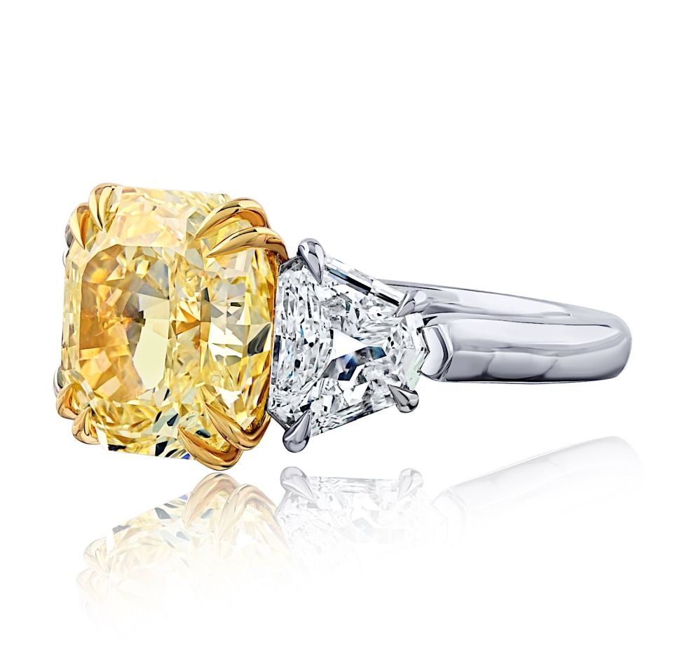 5 carat Radiant Cut Diamond Fancy Yellow GIA Ring