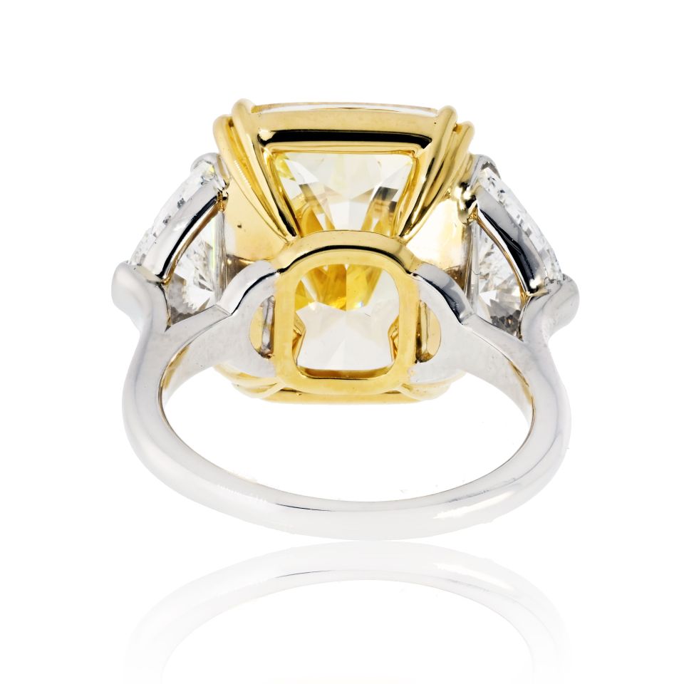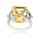 13 carat Cushion Cut Fancy Yellow GIA Diamond Three Stone Diamond Engagement Ring