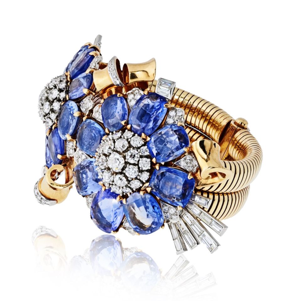 Mauboussin 18K Yellow Gold Trabert and Hoeffer Mauboussin Sapphire And Diamond Retro Bracelet Bracelet