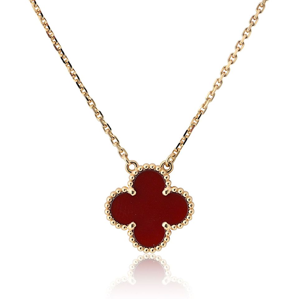 Van Cleef & Arpels Alhambra 18K Rose Gold Carnelian Single Alhambra Necklace