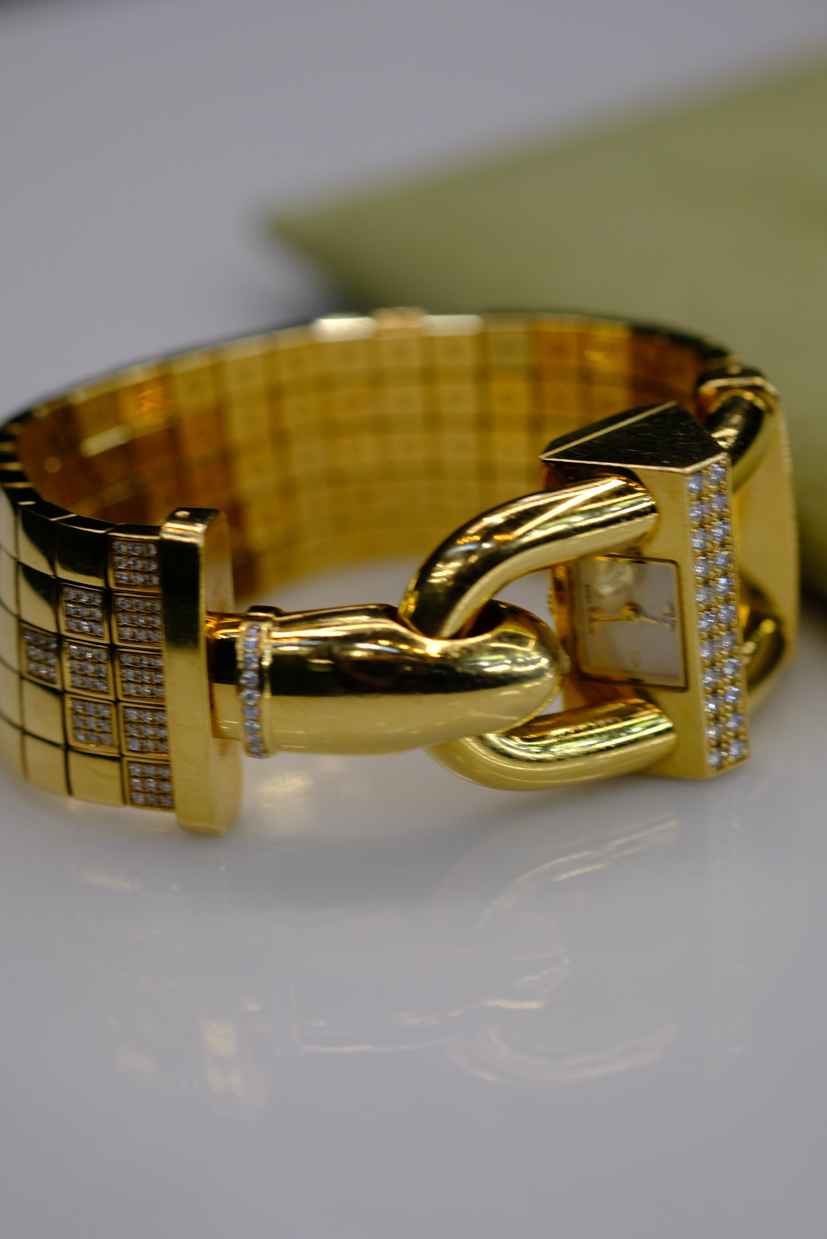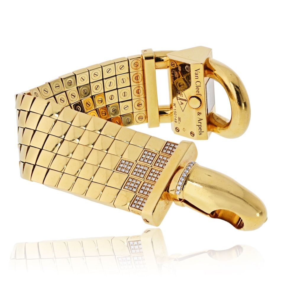 Van Cleef & Arpels 18K Yellow Gold Domino 39 Diamond Bracelet Hidden Watch