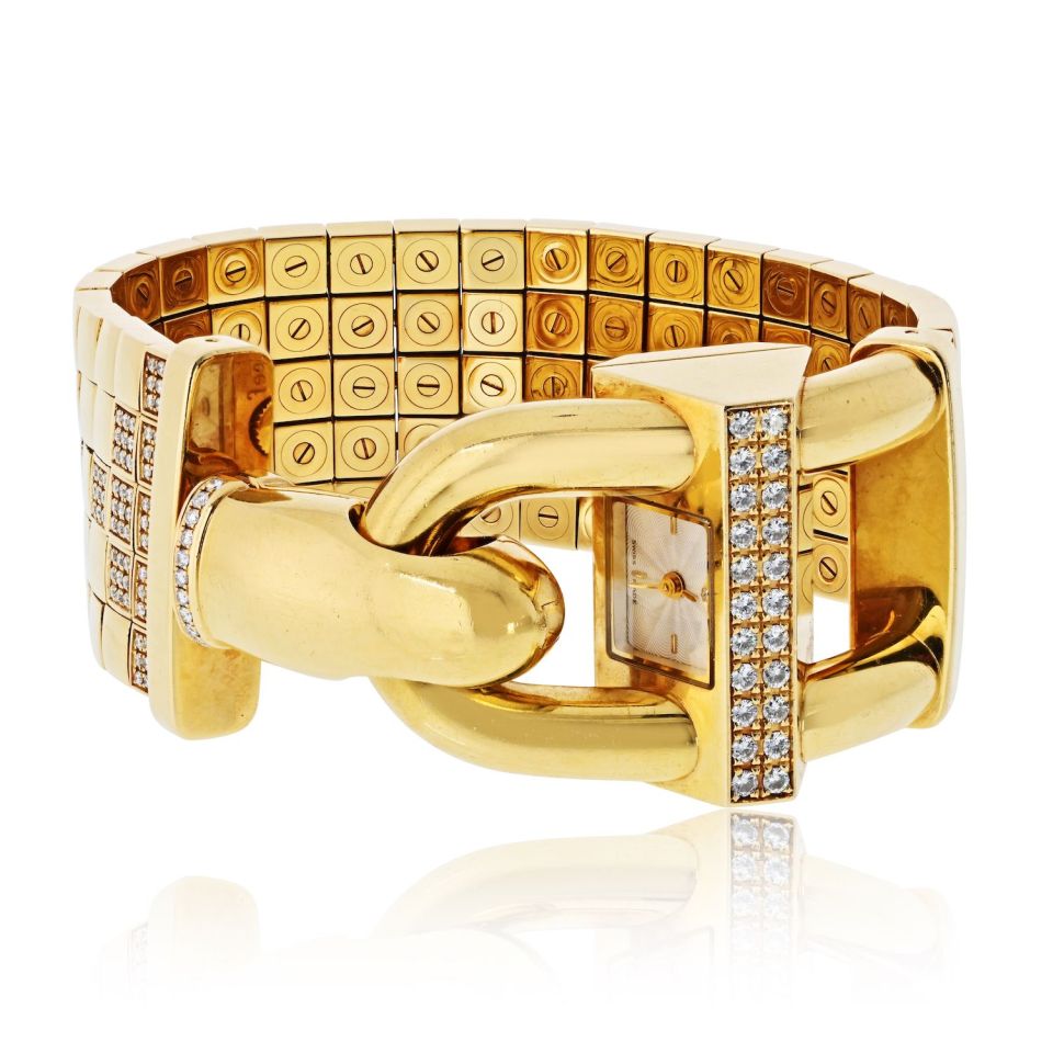 Van Cleef & Arpels 18K Yellow Gold Diamond Cover Open Link Watch