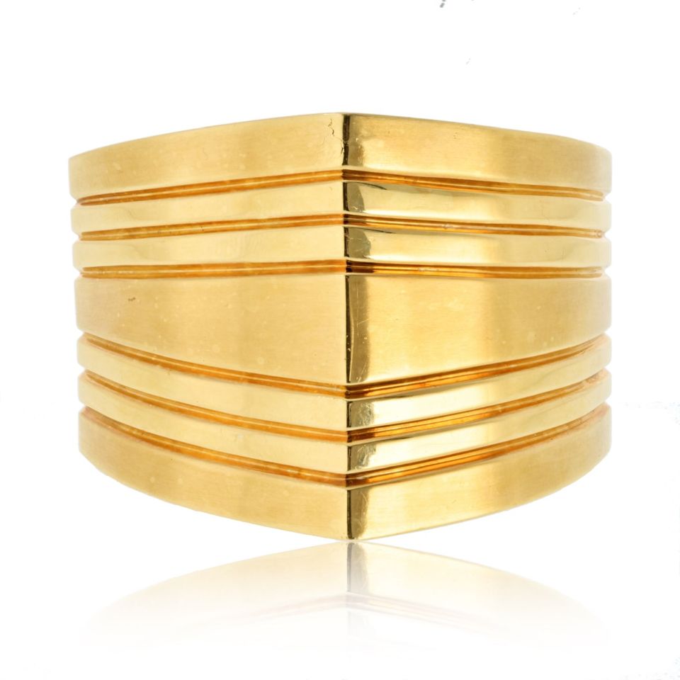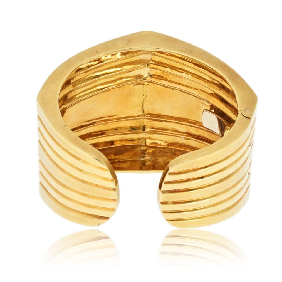 18K Yellow Gold Geometric Hinged Cuff Bangle Bracelet