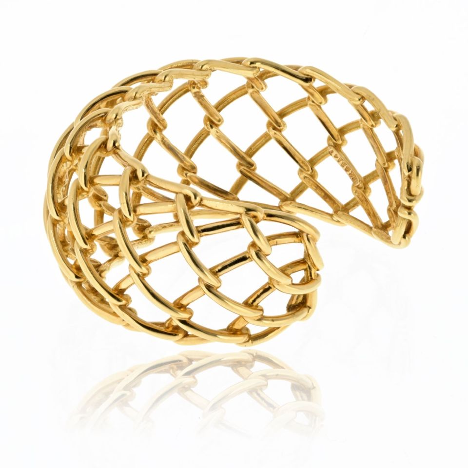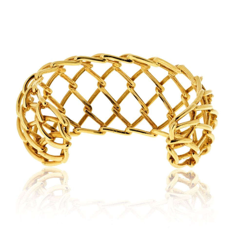 David Webb 18K Yellow Gold Weave Cuff Openwork Bracelet