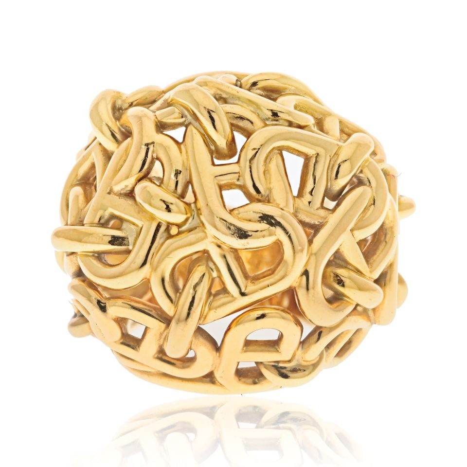 Hermes 18K Yellow Gold Chaîne d'Ancre Dome Cocktail Ring