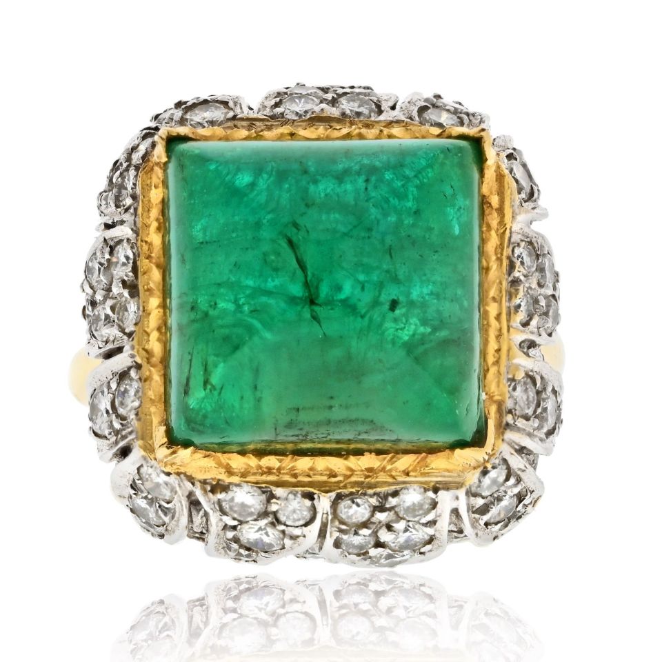 David Webb Platinum & 18K Yellow Gold 1960's Green Emerald Sugarloaf Ring