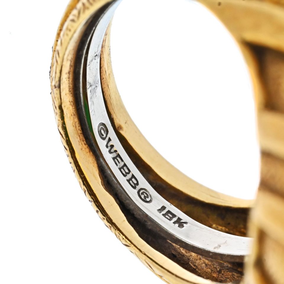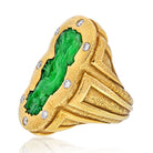 David Webb Platinum & 18K Yellow Gold 1970's Carved Jade Dragon Style Ring