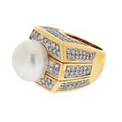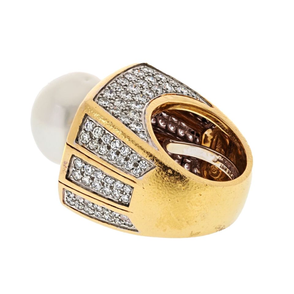 David Webb Platinum & 18K Yellow Gold Pearl And 9.00cttw Diamond Ring