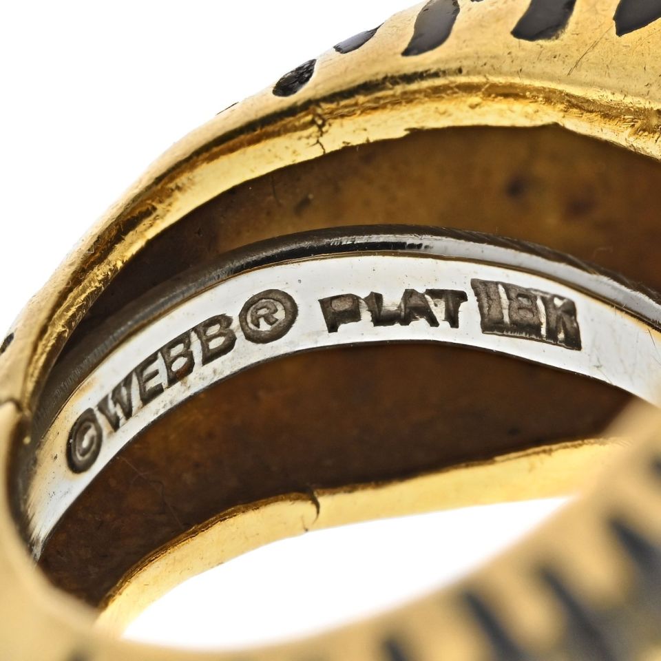 David Webb Platinum & 18K Yellow Gold Zebra White Enamel Animal Ring