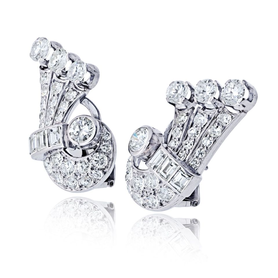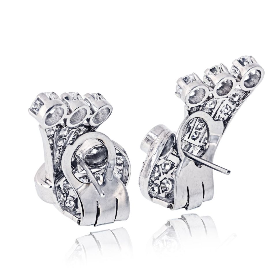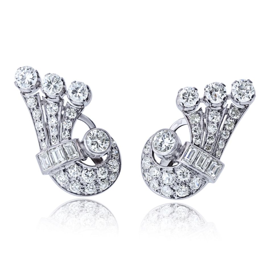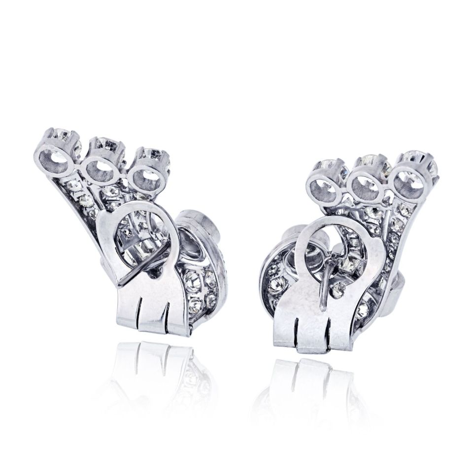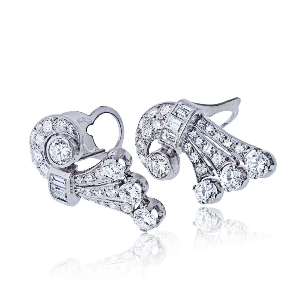 Art Deco Platinum Vintage Fan Earrings