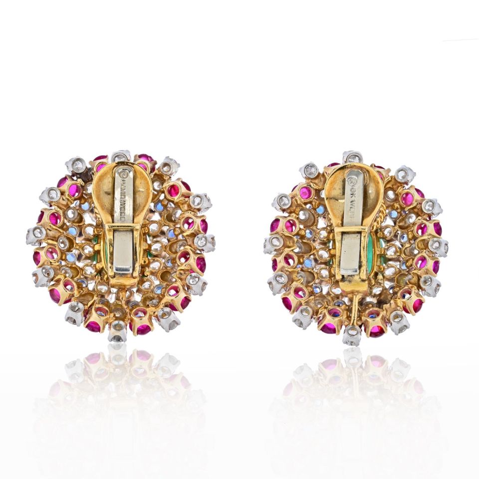 David Webb Platinum & 18K Yellow Gold Emerald, Ruby And Diamond Clip Earrings