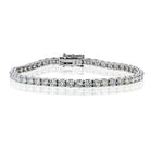 Crafted in 14K white gold, this elegant tennis bracelet features 49 round brilliant-cut diamonds, each approximately 0.13 carats, for a total carat weight of 6.37. Graded G-H color and VS2 clarity, the diamonds offer exceptional brilliance and clarity, making this bracelet a timeless and refined statement piece.