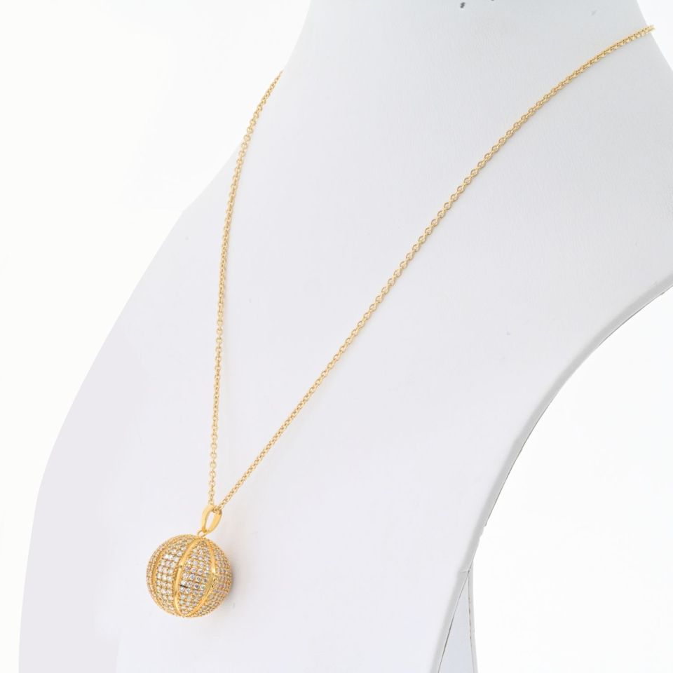 A 14K Yellow Gold necklace adorned with 8.00 carats of diamonds in the shape of a basketball makes a unique and eye-catching piece! The combination of yellow gold and diamonds adds luxury and sparkle to the design. It's sure to be a standout accessory for any basketball enthusiast or lover of fine jewelry.