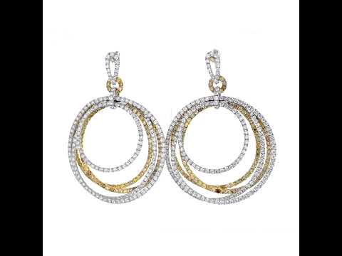 18K Two Tone 24.57 Carat Pave White And Chocolate Diamond Dangling Hoop Earrings