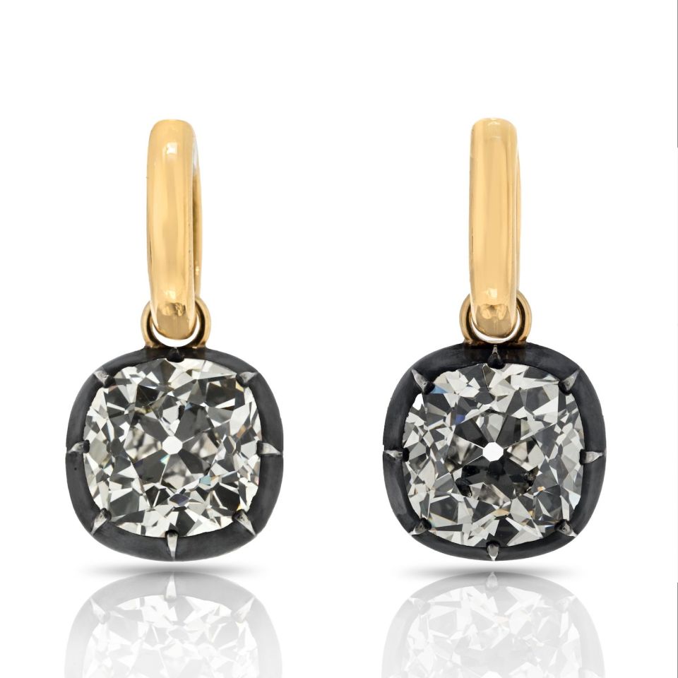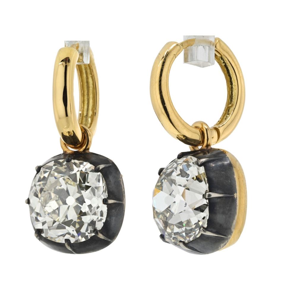 18K Yellow Gold 14.60cttw Old Mine Cut Diamond Drop Earrings
