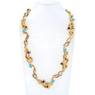 18K Yellow Gold Articulated Snakes With Turquoise, Lapis And Diamond Necklace