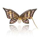 18K Yellow Gold & Silver Light Blue Opal And Daimond Butterfly Brooch