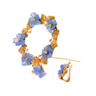Buccellati vintage flower earrings (clip-on) and brooch set featuring gold wreath with purple flower embellishement.
