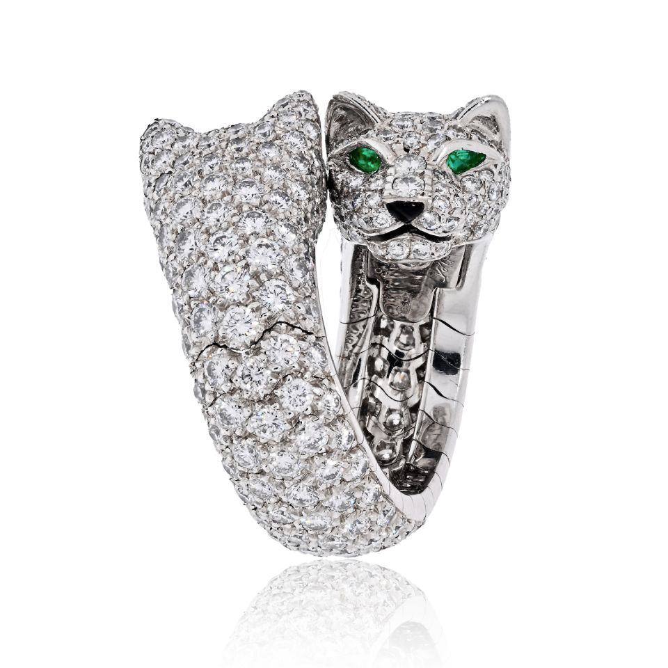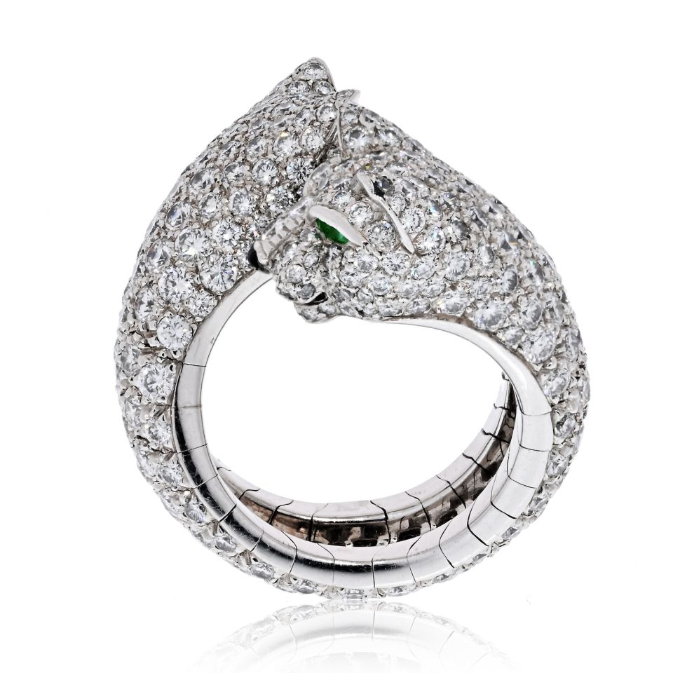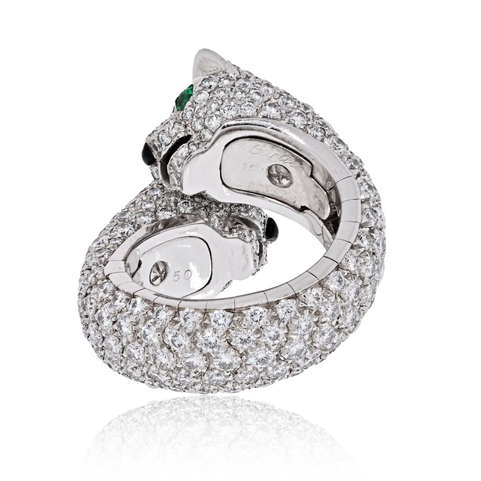 Cartier Panthere Ring, with double Lakarda diamond panthers facing each other. The Panthere de Cartier ring, made in 18K white gold, set with 356 brilliant-cut diamonds, totaling 5.04cts.