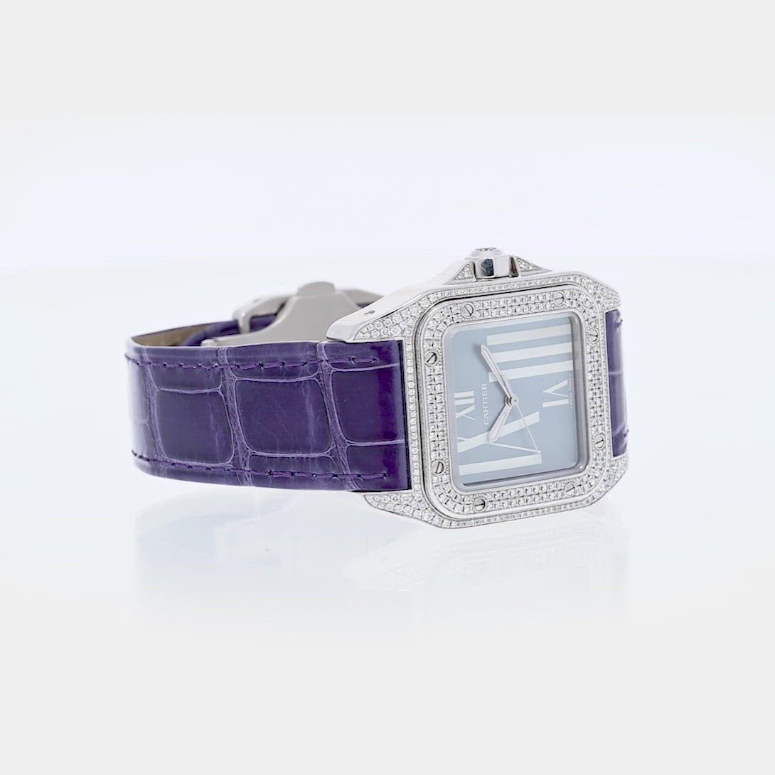 Cartier 18K White Gold Santos 100 Unisex White Gold Diamond Unisex Watch