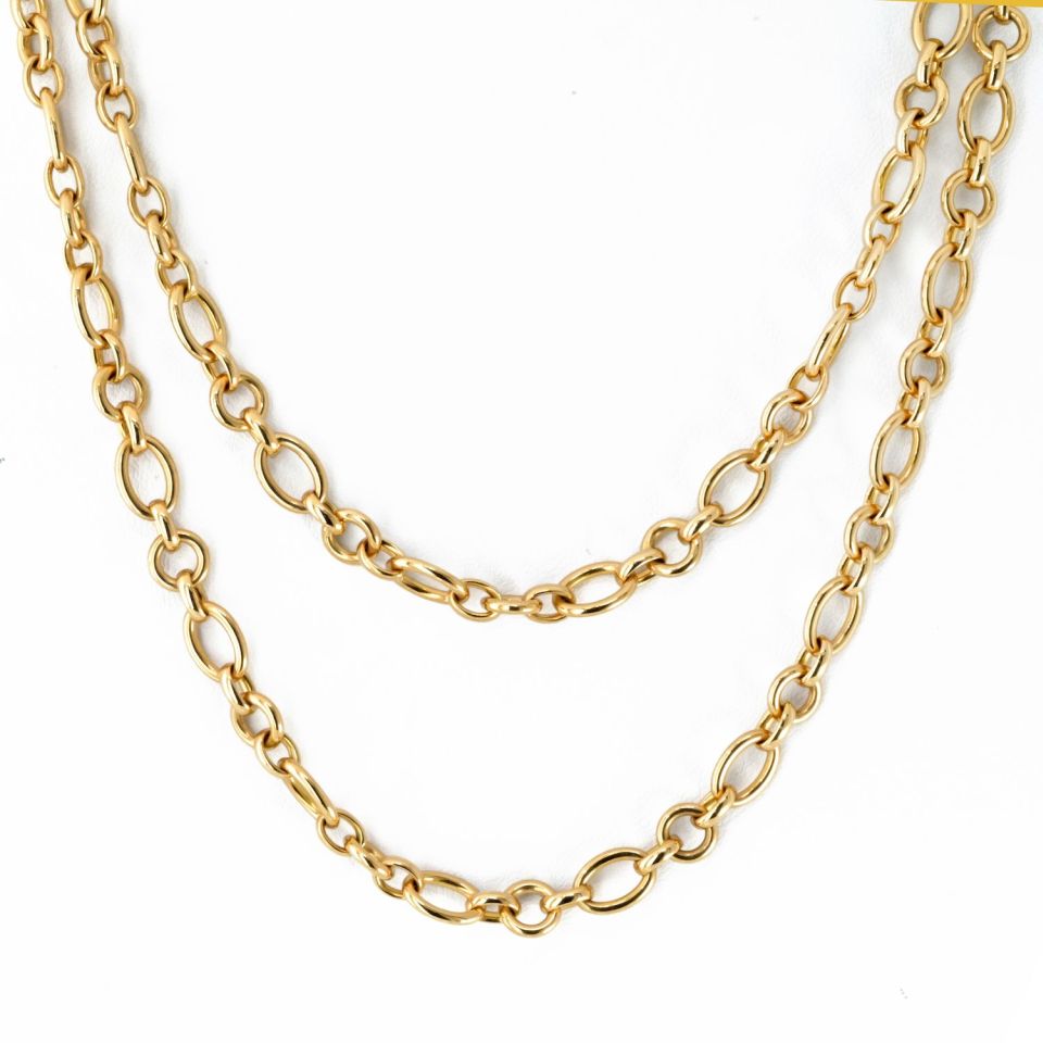Cartier 18K Yellow Gold Oval And Round Chain 36 Inches Necklace
