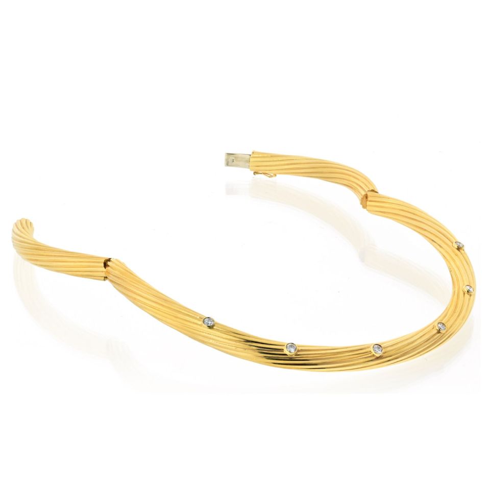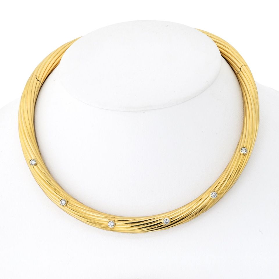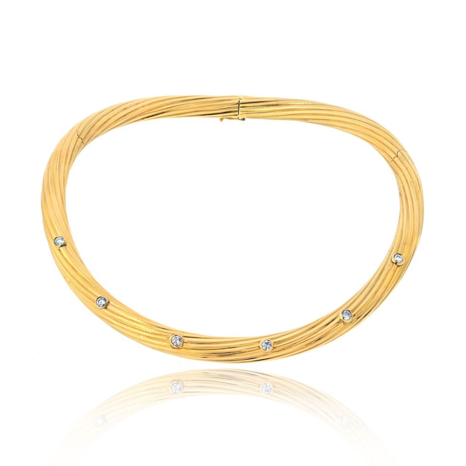 Cartier 18K Yellow Gold Fluted Twist Diamond Choker Necklace.