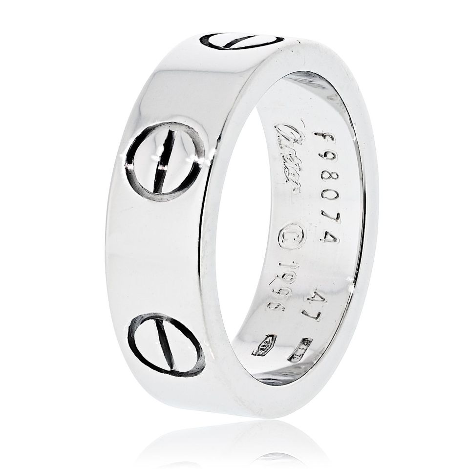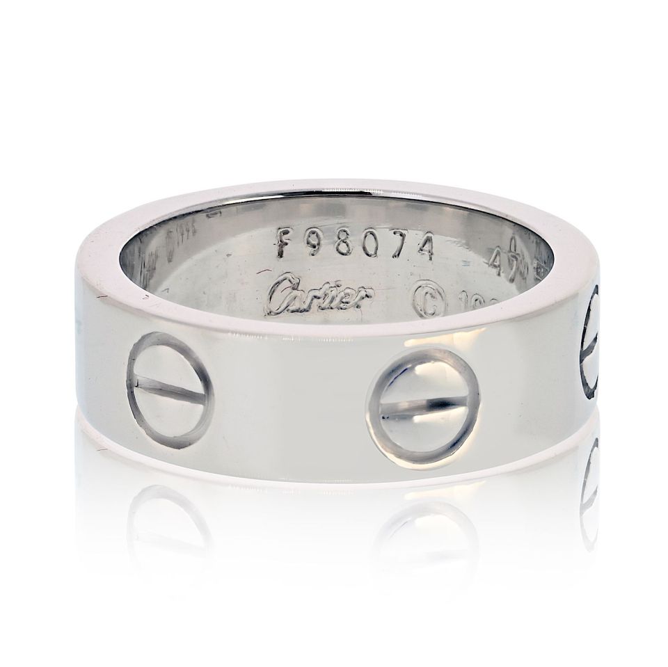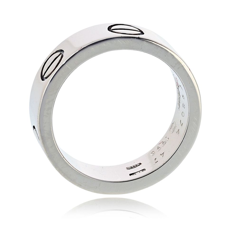 The Cartier Love ring in 18K white gold is an enduring symbol of elegance and commitment. Designed with the iconic screw motifs that represent unity and everlasting love, this classic band embodies Cartier#s signature minimalism and sophistication. The smooth, polished white gold surface gives it a modern yet timeless appeal#perfect for daily wear or as part of a matching Love set. A true Cartier essential, it reflects both refined craftsmanship and meaningful design, making it one of the most recognizable and beloved rings in the world.