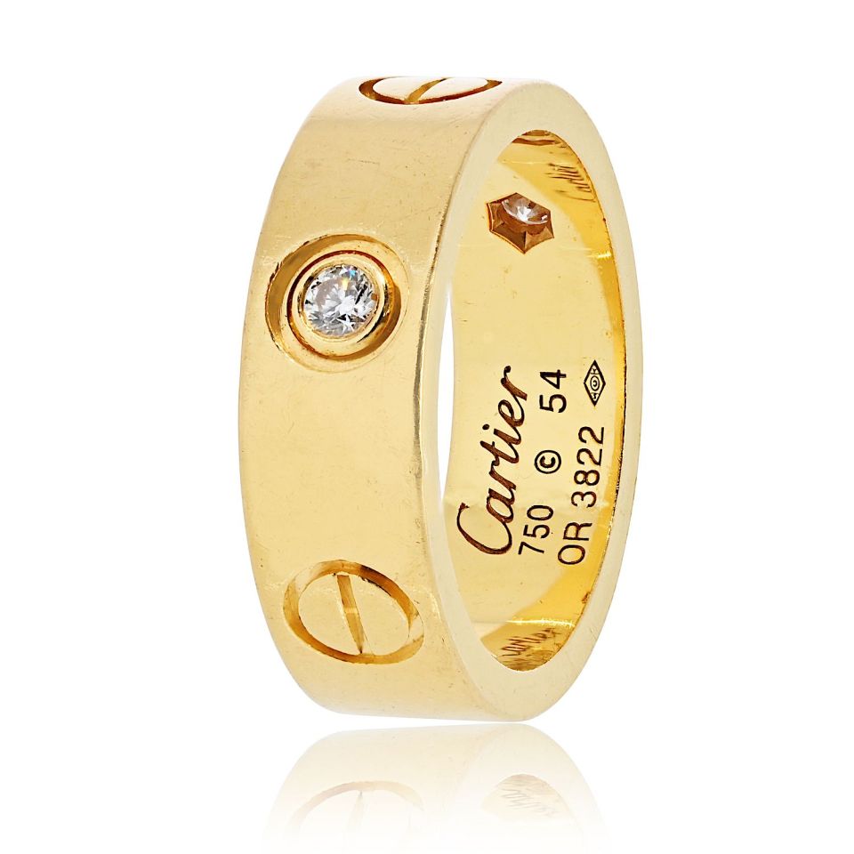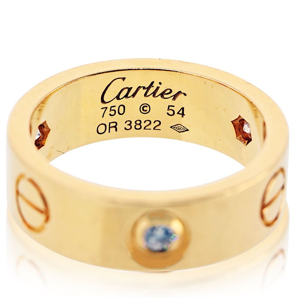Cartier Love 18K Yellow Gold 3 Diamond, Size 54 Ring
