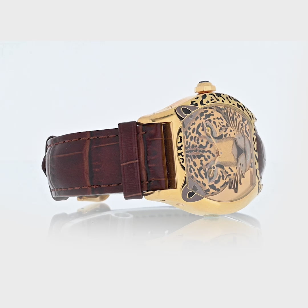 Cartier Tortue Panthère Face Limited Edition Enamel and Yellow Gold Women Wristwatch