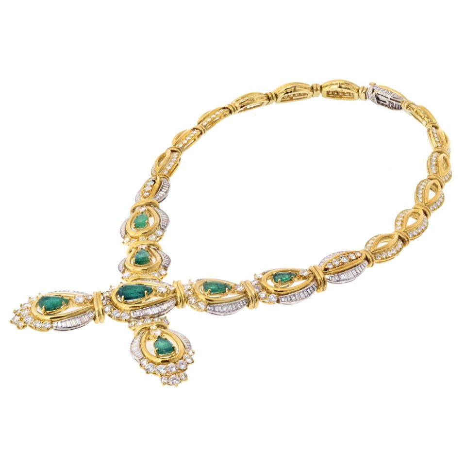Chaumet Emerald Platinum & 18K Yellow Gold Diamond And Green Emerald Ladies Necklace.