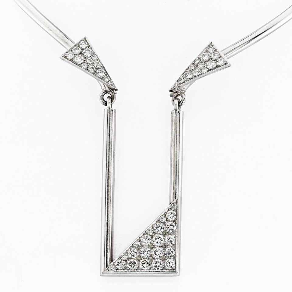 Collar 14K White Gold Geometrical Collar Necklace
