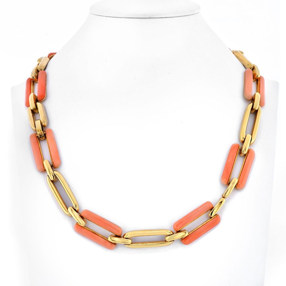 David Webb 18K Yellow Gold Pink Coral And Gold Link Convertible Necklace.